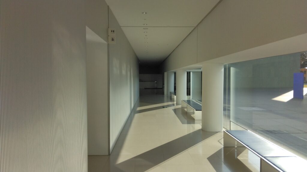 朝から新神戸を出発して、静岡県掛川市に向かった。JR掛川駅に降り立つ。静岡県の地を踏むのは初めてなんじゃないだろうかと考えながら徒歩20分で資生堂アートハウスに辿り着いた。建物に近づくにつれ、谷口氏らしい建物の外観が見えてきた。気持ちが高揚するような、ほっと落ち着くような何とも言えない気分のまま、エントランスから美術館内に入っていく。エントランスもそうだが、豊田市美術館と同様に高さのメリハリが心地よく感じた。また、建材や色味を多くは使っていないので、その高さのメリハリが一層引き立つ。資生堂アートハウスは谷口氏の初期の作品だが、その後に続く建物と遜色なく、要所要所に抑制と抑揚が付いていて、とても素晴らしい建物だった。