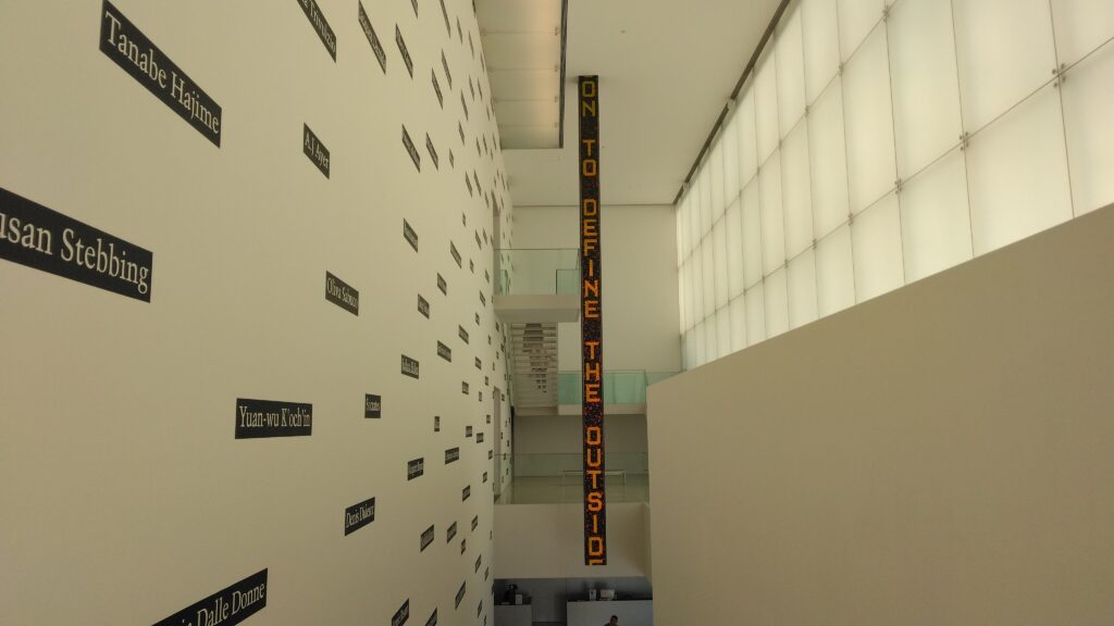 前回、豊田市美術館に来たのがいつかは定かではないが、確実にコロナ禍前だったので、かなり久しぶりの訪問となった。だが、数えきれないぐらい訪れているので、入口に立った時点で家に帰ってきたような気分になった。相変わらずエントランスの高さの抑揚が素晴らしいなと思いながら、外から建物全体を眺めた。今まで何となくは思っていたが、ランドスケープデザインはピーター・ウォーカー氏が担当しているが、このランドスケープがあるからさらにこの建物はさらに昇華されているようにも思った。来る度にいろいろな発見がある。次に来るのはいつかは分からないが、必ずまた来ようと思った。